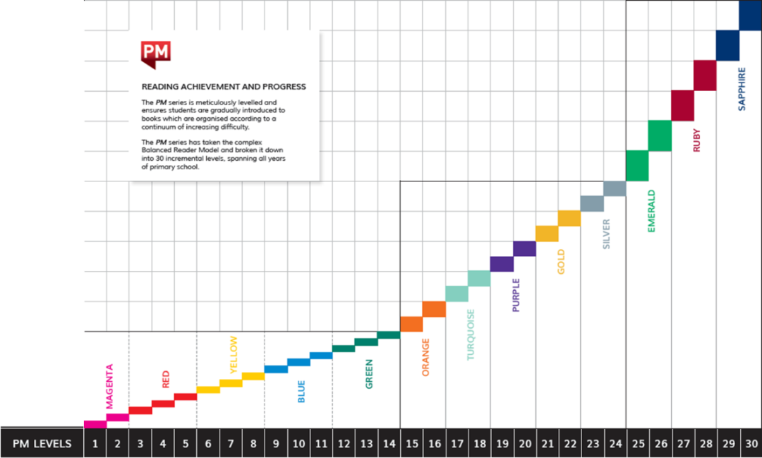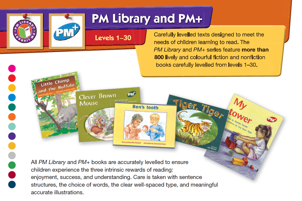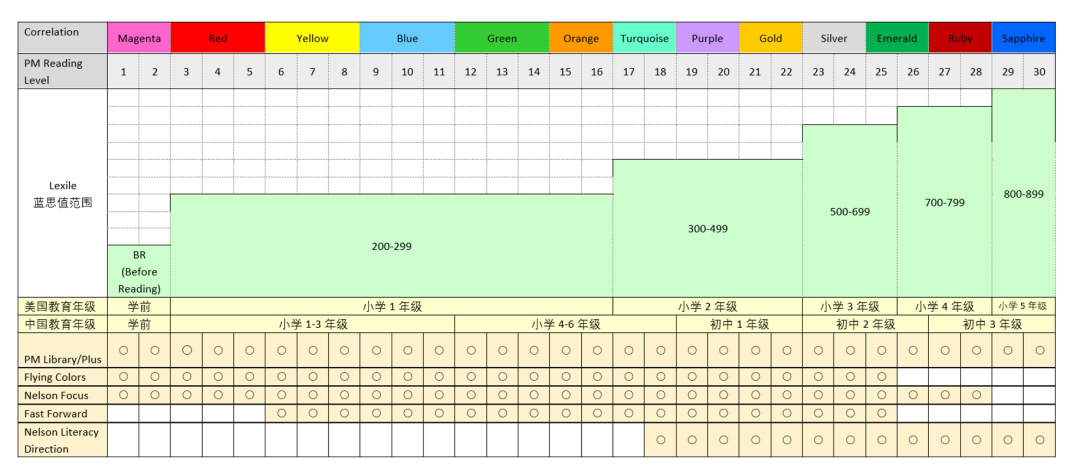 针对幼儿-初中段的孩子,PM系列以不同颜色作为分级标准,在颜色作为大级别下,又细化为30个等级,包含了2000多本主题广泛、内容丰富的读本。